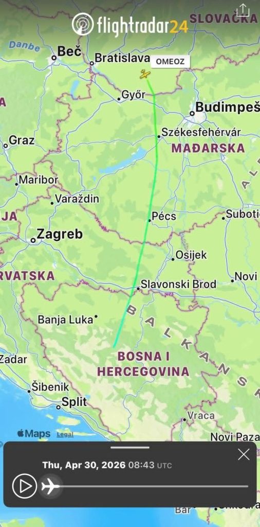 Do slijetanja je došlo prije otprilike pola sata, a avion je, kako prikazuje flightradar24 poletio direktno iz Slovačke jutros u 9:00 sati.