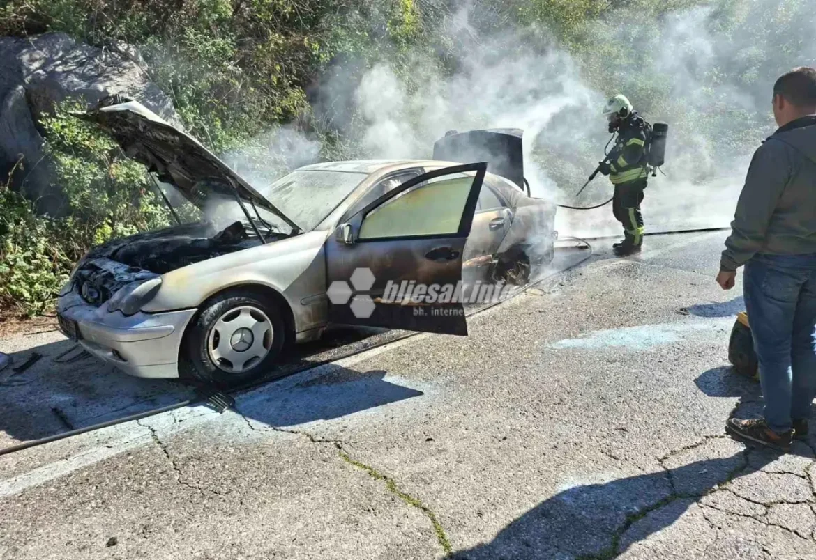 Na prometnici koja od Mostara vodi prema naselju Goranci, oko 11:03 sati, izbio je požar u kojem je potpuno izgorjelo osobno vozilo marke Mercedes. Vatrogasna služba poslala je dva svoja vozila i šest vatrogasaca na mjesto događaja, no unatoč brzoj intervenciji, automobil je u potpunosti izgorio. Uzrok požara za sada nije poznat.