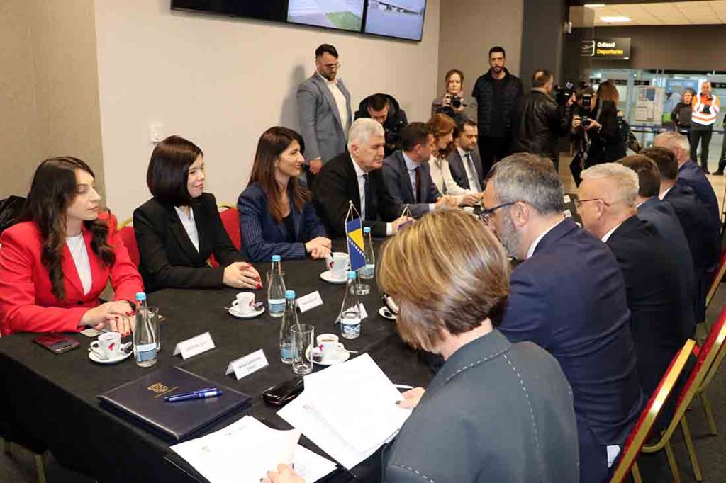 Ugovore je, s gradonačelnicom Čapljine Ivom Raguž odnosno gradonačelnikom Mostara Marijom Kordićem, potpisao potpredsjednik Vlade RH i ministar mora, prometa i infrastrukture RH Oleg Butković, a zbivanjima u Gradskomu poglavarstvu Čapljine i Zračnoj luci Mostar, između ostalih, nazočili su i predsjednik Hrvatskoga narodnog sabora BiH i zamjenik predsjedatelja Doma naroda Parlamentarne skupštine BiH Dragan Čović, zastupnica u Zastupničkomu domu Parlamentarne skupštine BiH Darijana Filipović, ministrica prometa i komunikacija FBiH Andrijana Katić, predsjednica Vlade Hercegovačko-neretvanske županije Marija Buhač, državni tajnik Središnjega državnog ureda za Hrvate izvan RH Zvonko Milas, veleposlanik RH u BiH Ivan Sabolić, državni tajnik za željezničku infrastrukturu, promet, elektroničke komunikacije i poštu RH Žarko Tušek te ravnatelj Zračne luke Mostar Marko Đuzel.